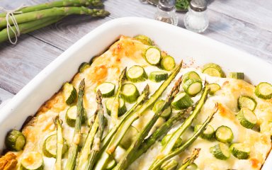 Використовуйте свіжу спаржу по максимуму і спробуйте цю легку нежирну вегетаріанську лазанью. Її легко готувати.