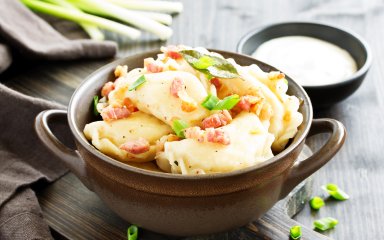 Вареники в соусі карбонара — новий погляд на класику