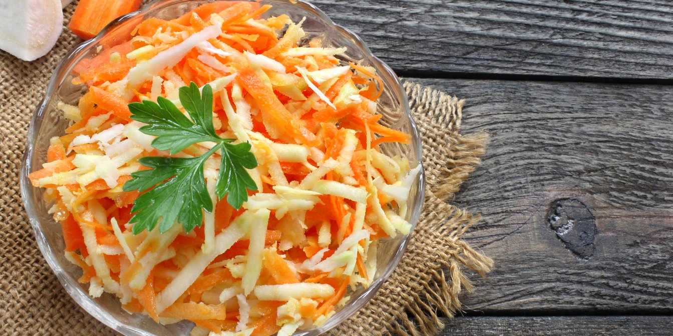 Морква, селера та петрушка належать до однієї ботанічної родини окружкових, тож багато в чому вони схожі. Наприклад, коренеплоди цих рослин вирізняються духмяністю. Кожен з них пахне по-своєму, але цей аромат складний та цікавий і довго відчувається тонізуючим приємним післясмаком. Ми пропонуємо додати до цього смакового та ароматичного розмаїття варені яйця для ситності, і тоді салат ідеально підійде для легкого обіду. Смакуйте його з домашнім хлібом, який можна обрати з нашої добірки найкращих рецептів.