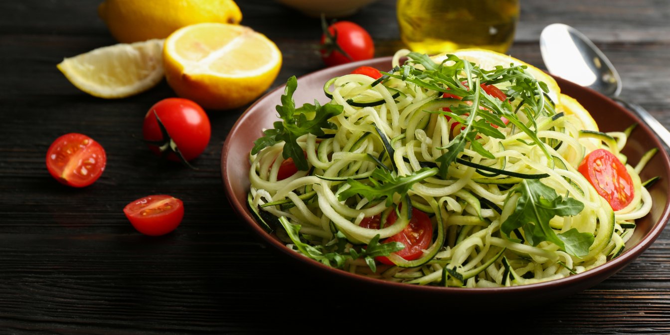 Теплий сезон — ідеальний час для вживання свіжих фруктів та овочів та збільшення їх споживання у повсякденних стравах. Тому спробуйте приготувати цей овочевий салат зі «спагеті» з цукіні. Він підходить для вегетаріанців, а вегани можуть замінити його на тофу або просто не додавати у салат.