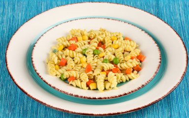 Ці макарони по-східному дуже смачні й легкі в приготуванні. Страва особливо зручна тим, що для неї використовується заморожена овочева суміш. Вона може містити різні комбінації, наприклад моркву, броколі, зелений горошок, кабачки та стручкову квасолю абощо.