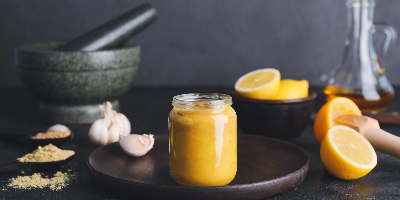 Готується такий маринад на основі натурального йогурту з додаванням гірчиці, оливокової олії, лимонного соку та спецій. Маринувати шматочки м’яса в такому маринаді треба мінімум 30 хвилин або ж можна сміливо «забути» в холодильнику на цілу ніч, від цього курочка стане лише кращою.