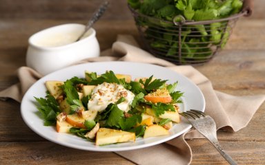 Суміш яблук, салатів і сухариків з білого хліба, підсилена тягучим сирним соусом з камамберу і вершків, вразить ваші смакові рецептори. Готувати страву просто, а з’їдається вона за лічені хвилини.