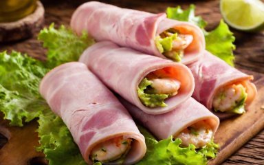 З авокадо та креветками: рулетики з шинки на святковий стіл