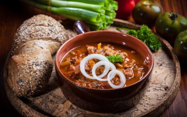 SHUBA радить обрати для гуляшу м’ясо саме зі стегна — воно ароматне та трохи більш жирне, ніж філе. Це надає м’ясній страві насиченішого смаку. Не бійтеся поекспериментувати зі спеціями — окрім стандартних солі та чорного перцю, можна додати паприку, гострий чилі, базилік, часник, орегано чи куркуму. А ось іще кілька рецептів гуляшу для урізноманітнення вашого меню:
