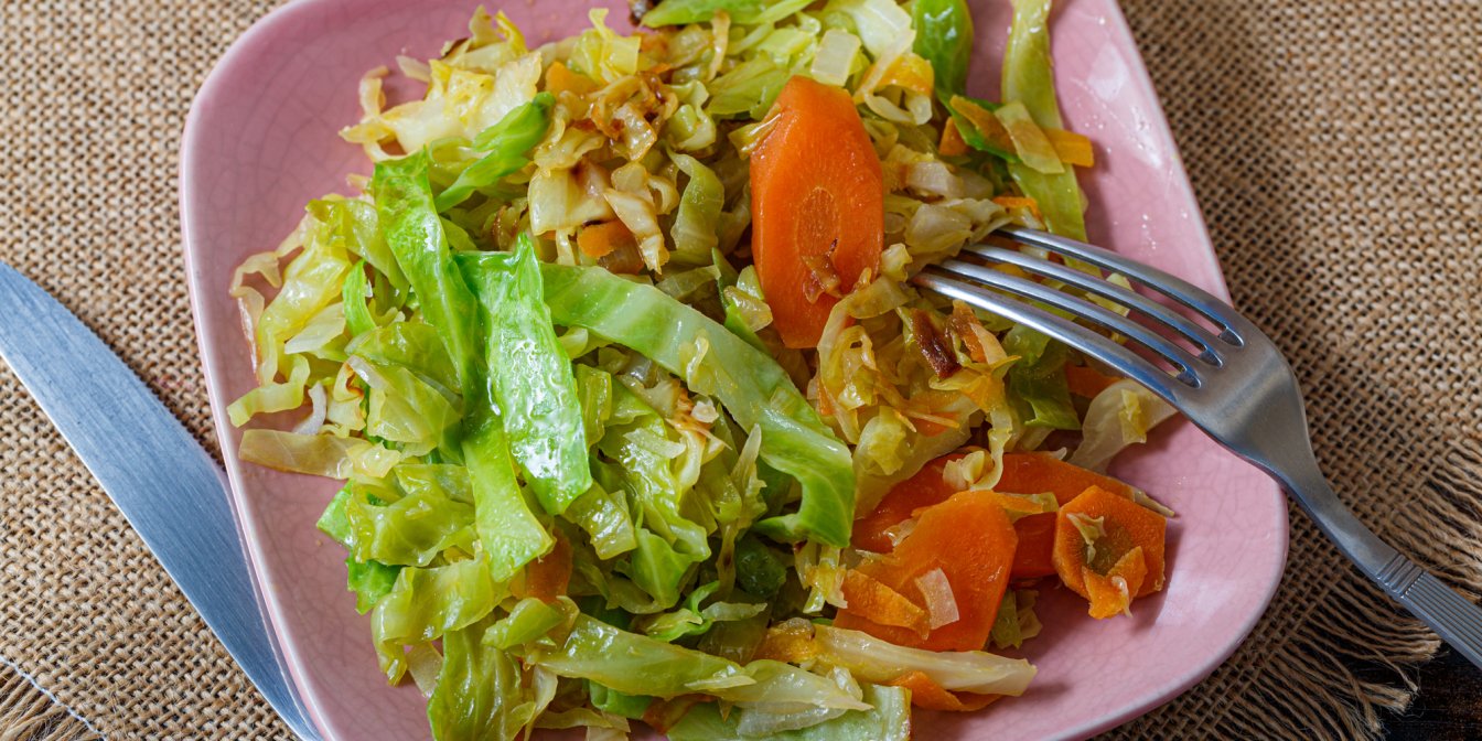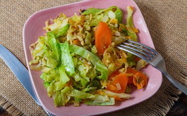 Ця страва з молодих капусти та моркви готується дуже швидко, тож у ній зберігаються і смак, і краса свіжих овочів.