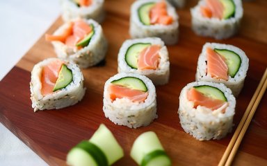 Ця закуска натхнена японськими суші, але приготована з сендвіч-хліба, слабосолоного лосося, солоного огірка та соусу. Проста й універсальна, вона може бути різною, наприклад, з шинкою та сиром або авокадо-пастою та креветками.
