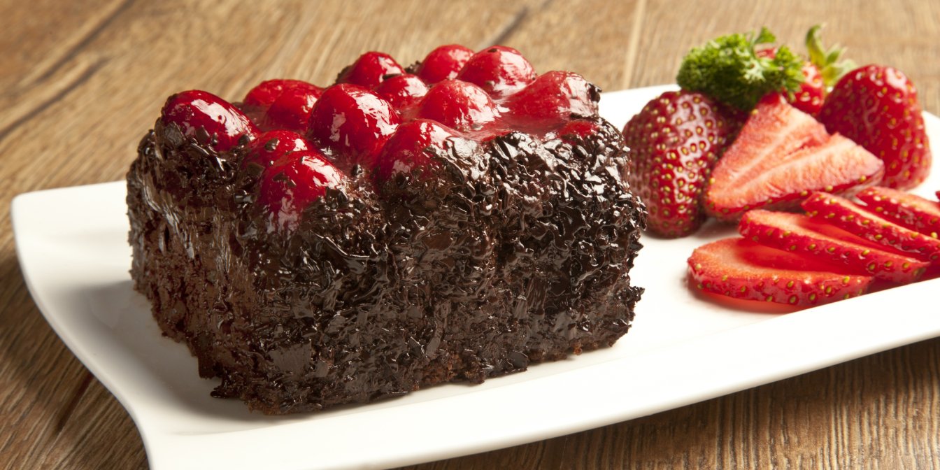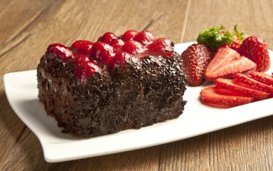 Полуниця і шоколад — класичне поєднання. У цьому пирогу шоколад вкриває полуничну начинку, яка просочує шоколадне тісто.