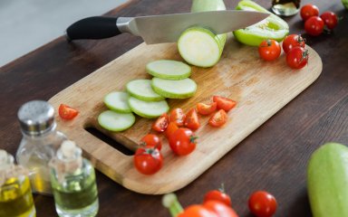 Кабачки добре помийте, зріжте попки, а потім наріжте шматочками по 0.5-1 см.