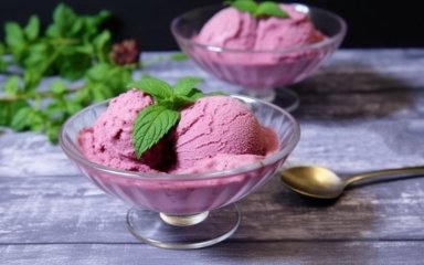 Подавайте морозиво. прикрасивши його м'ятою.