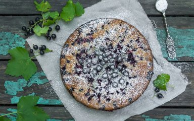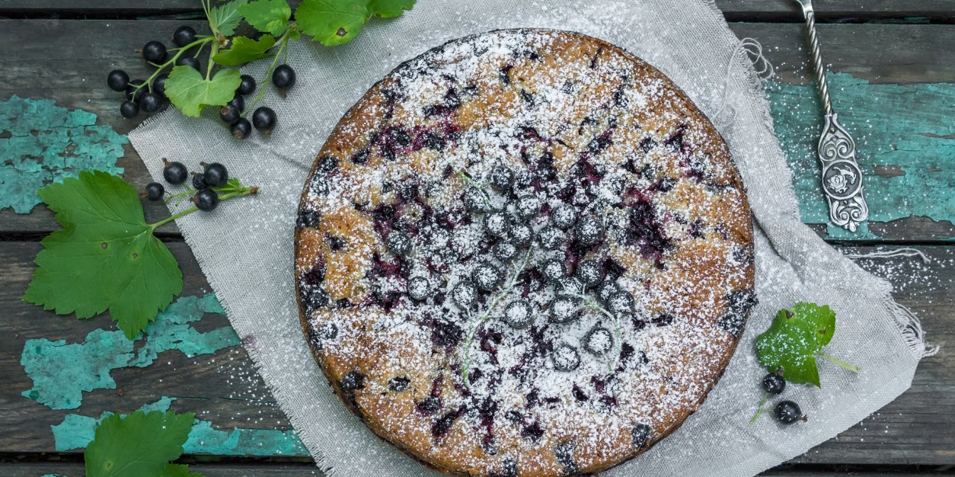 Від традиційного рецепту шарлотки цей відрізняється тим, що замість молока чи кефіру у тісто додається кисломолочний сир і менше борошна. А замість яблук — літня ягода чорна смородина. Але мелена кориця все ж налаштовує на настрій шарлотки.