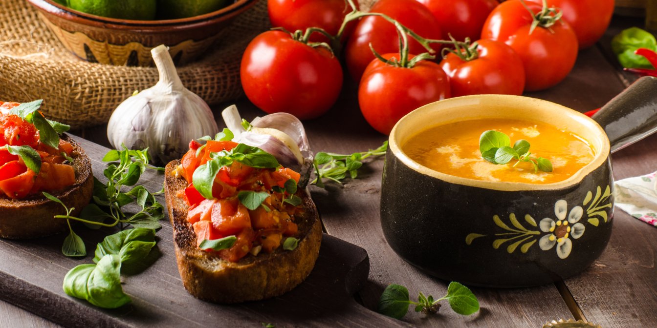 Бракує італійського колориту за столом? Приготуйте цей густий томатний суп і хрусткі брускети з ароматним часниковим присмаком.