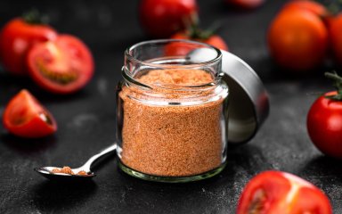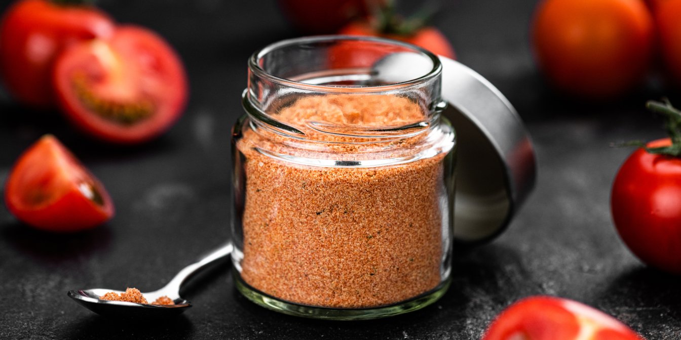 Наповнений ніжним літнім ароматом, томатний порошок є чудовим універсальним доповненням до багатьох страв. Його легко приготувати, і він ідеально підходить для зберігання помідорів, заощаджуючи місце, тару та час.