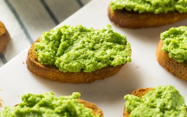 Гороховий песто смакує з гарячою пастою, салатами, коржиками або просто із хлібом.
