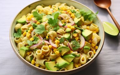 Влітку, коли багато свіжих овочів стають доступними прямо з грядки, потрібно використовувати цю можливість на максимум. Цей нетрадиційний салат з пасти поєднує улюблені інгредієнти в яскравій та пряній страві. Він свіжий і ароматний, але водночас кремовий завдяки маслянистому стиглому авокадо. Літній настрій салату додає дресинг з оливкової олії та лайма.