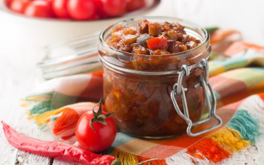 Це консервоване овочеве асорті, яке називається 10×10 не просто так, а через кількість кожного інгредієнта, має інтенсивний і рішучий смак. Суміш баклажанів, цибулі, моркви, болгарського перцю і помідорів під оцтом — ідеальна закуска взимку.