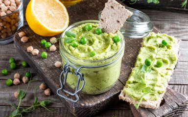 Але кремова текстура зеленого горошку також ідеальна для різноманітних пюре та паст, які можна покласти на хліб чи тост або подати як гарнір, чи соус. Для намазок підходить і молодий сезонний горошок, і зелений заморожений, і консервований. До речі, зелений горошок можна легко законсервувати вдома .