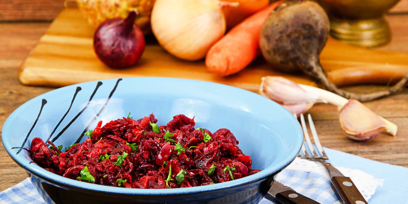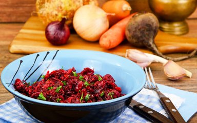 Всі овочі помийте й почистьте. Цибулю дрібно наріжте, перець наріжте тоненькою соломкою, а буряк і моркву натріть на крупній тертці чи для моркви по-корейськи.