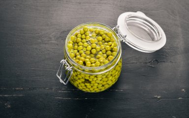Молодий зелений горошок промийте і насипте в простерилізовані баночки.