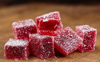 Поріжте готовий мармелад квадратиками і обваляйте в цукрі.