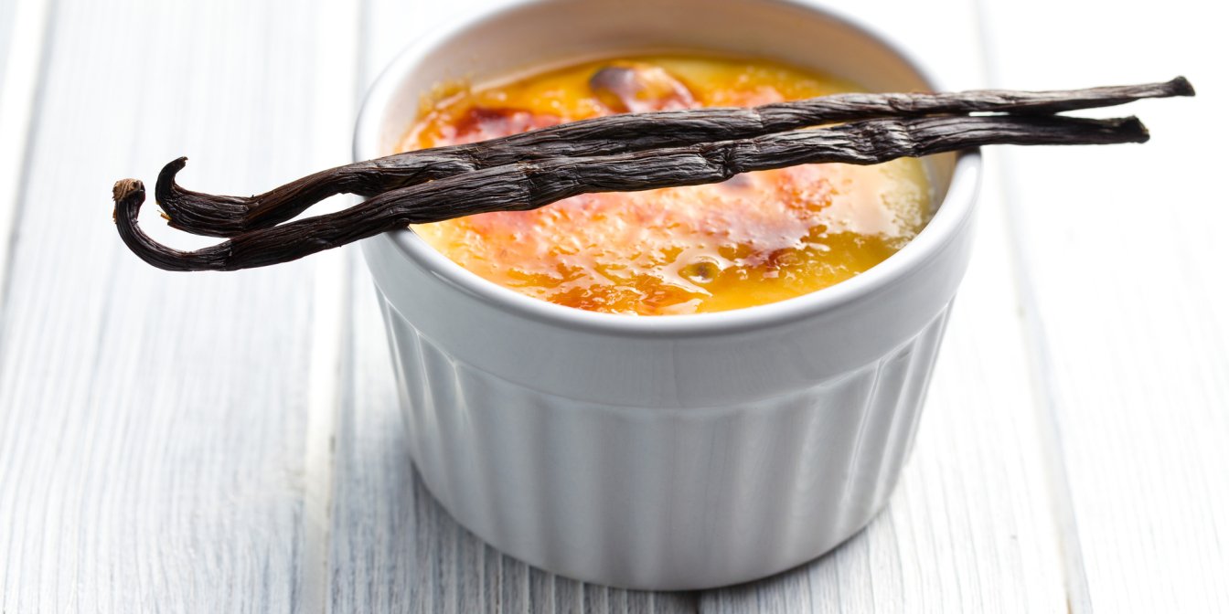 Щоб приготувати крем-брюле вдома, розігрійте на плиті жирні вершки та сіль. Додайте для аромату ваніль. Збийте жовтки та цукор разом, потім з’єднайте їх з вершками.