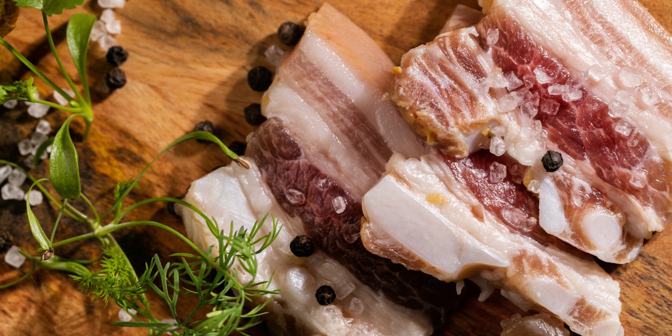 Проста і така українська закуска — сало гарячого засолу — ідеальна пара до борщу чи галушок.