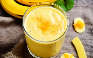 Якщо немає часу, щоб з'їсти тарілку смачних мюслей або вівсяної каші, тоді спробуйте золотий банановий смузі, оскільки його швидко і легко можна приготувати, і ви можете пити його на ходу.