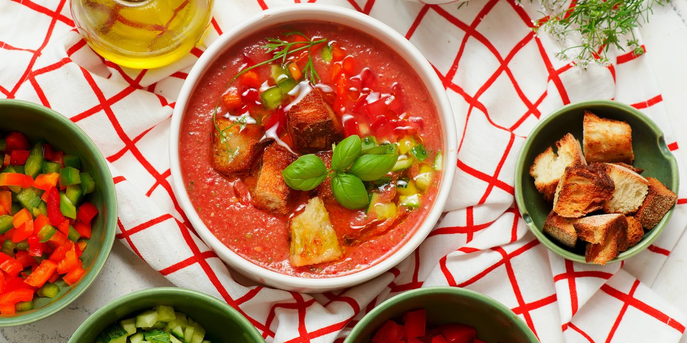 Приготуй холодний томатний суп зі стиглих помідорів, огірка та солодкого перцю, що чудово освіжає влітку. Простий рецепт гаспачо по-українськи цікавий тим, що адаптований під українські продукти, але зберігає все найкраще з іспанських рецептів.