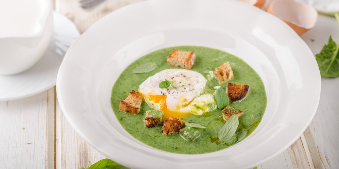 Поєднання шовковистої кремової текстури супу та ніжних яєць пашот із хрумкими підсмаженим беконом і сухариками сподобається тим, хто любить контрасти. Страва поживна, насичена і повна ароматів, тому охочих її спробувати збереться чимало.