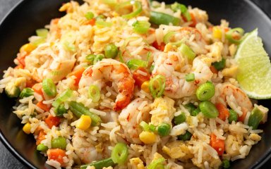 SHUBA радить обрати великі вже очищені креветки та не перетримати їх на сковороді — слідкуйте, щоб вони не були гумовими. Добре смажити креветки на сковороді-гриль. А ось іще кілька страв з рисом для вас: