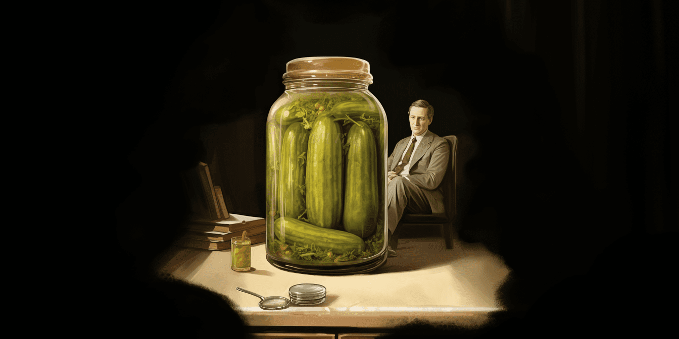 Верн розповідає про таємничий процес консервування, перетворюючи звичайні огірки на щось незвичайне і фантастичне. Він описує, як занурює огірки в океан солі та спецій, де вони проводять місяці в загадковому процесі ферментації, перш ніж стати ключем до виживання під час подорожі.
