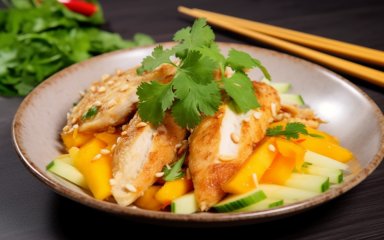 Цей салат здатен подарувати вам літній настрій, адже в його складі — стигле соковите манго, ароматна курочка у хрусткій кокосовій паніровці та доступні овочі.
