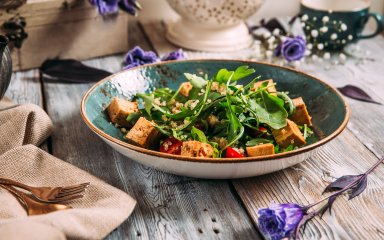 Насолоджуйтеся смаком Середземномор’я із цим яскравим салатом із запеченою фетою та в’яленими томатами. Паприка надає феті додаткову пікантну нотку під час запікання, а аромат солоного сиру робить цю страву безпрограшним рішенням для вечері.