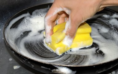 Один із найефективніших способів — це використовувати сіль. Насипте на сковорідку товстий шар солі та залиште на кілька годин. Сіль вбере в себе жир і запах риби. Промийте сковорідку теплою водою.