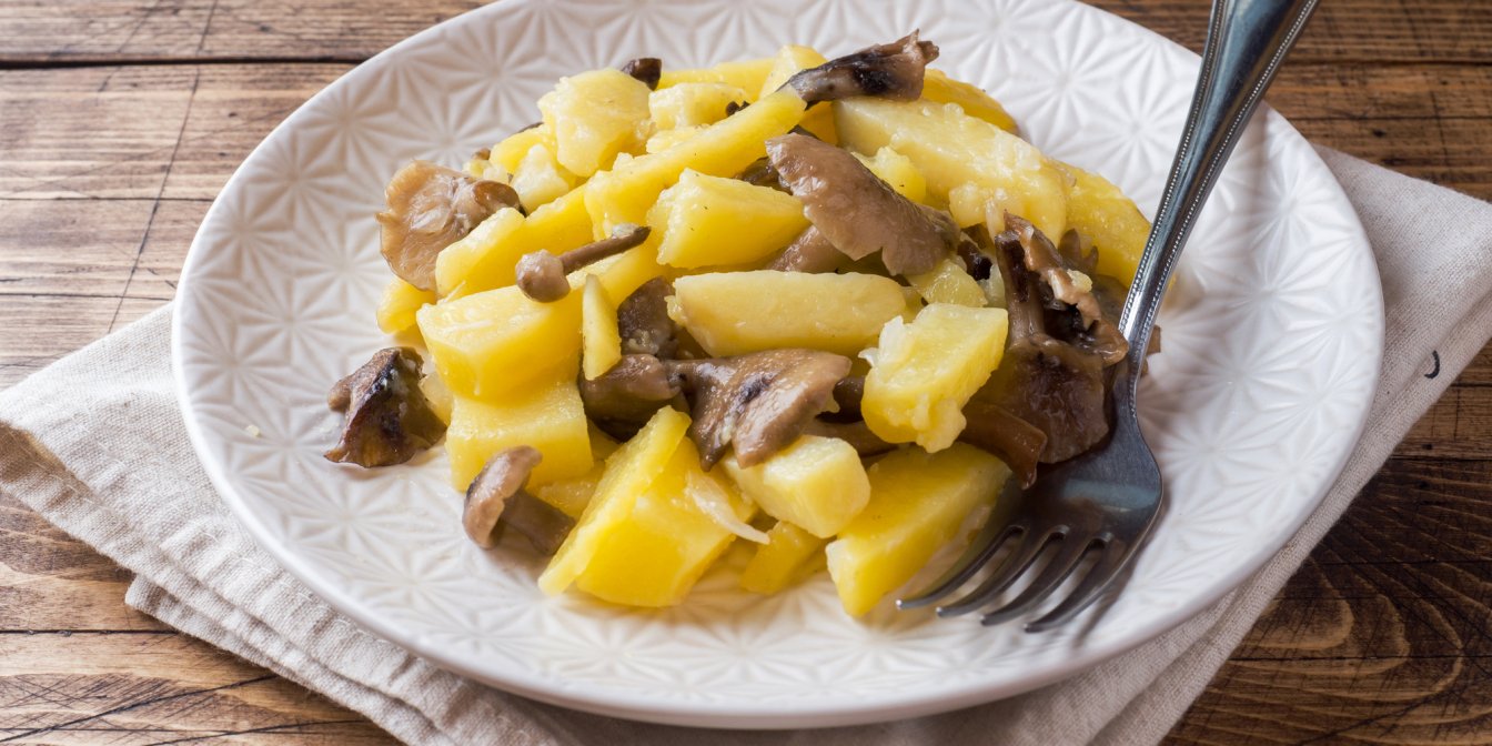 Ця пісна страва має давню історію, і готують її найчастіше на Святвечір, але вона підходить і на будень. Картоплю спочатку відварюють у кожушках, потім чистять, а зверху поливають підливою із сушених грибів. Найкраще пасуватимуть білі, але можна й маслюки.
