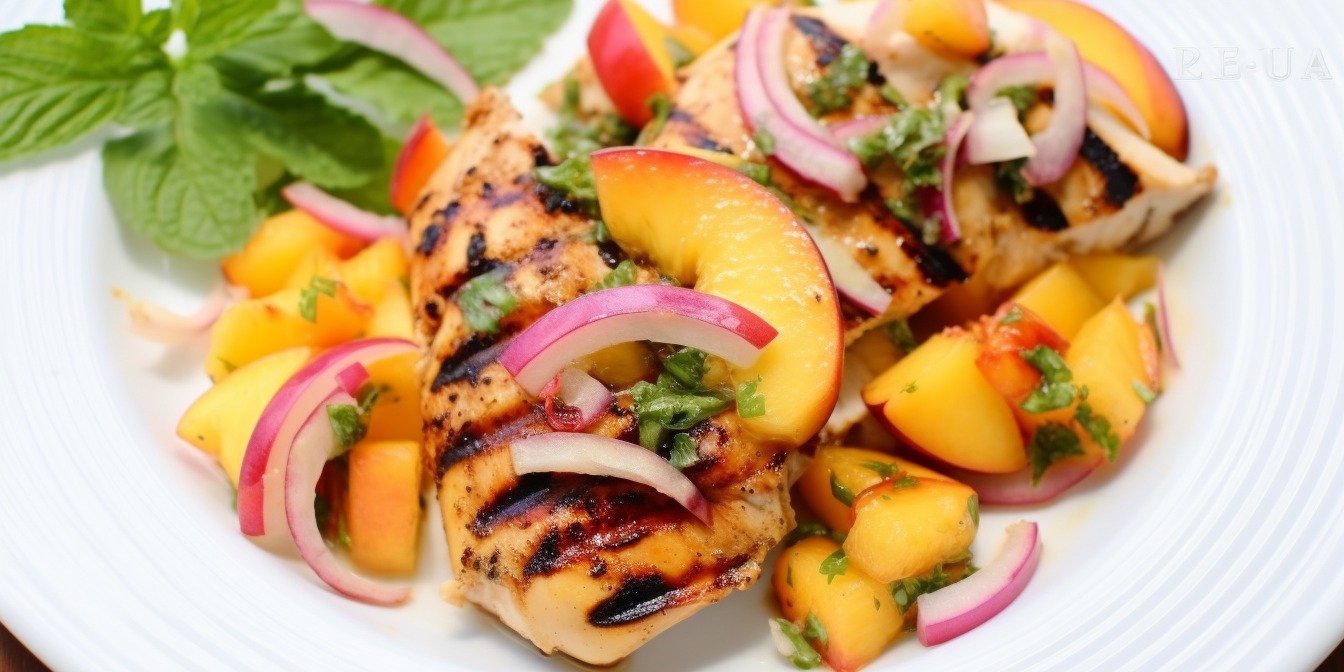Злегка мариновані курячі грудки, приготовлені у духовці (можна на грилі), прикрашені соусом з нектаринів, червоної цибулі та меду — це справжня смакота!