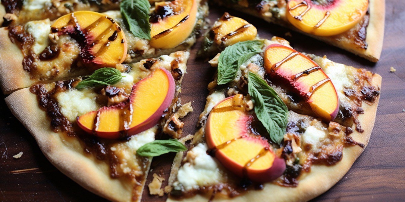 Незвична піца з нетиповою начинкою та соусом. Тісто пухке та еластичне, начинка — з нектаринів та сиру, а соус — з меду і бальзамічної глазурі.