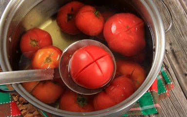 Відвари помідори впродовж однієї хвилини, почисть, наріж, потім прокипʼяти 20-25 хвилин. Тепер настав час приправ.