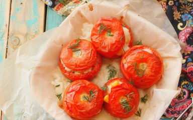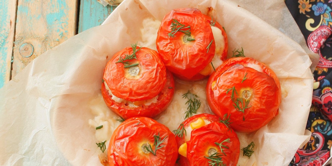 Рекомендуємо приготувати запечені помідори, фаршировані кисломолочним сиром.