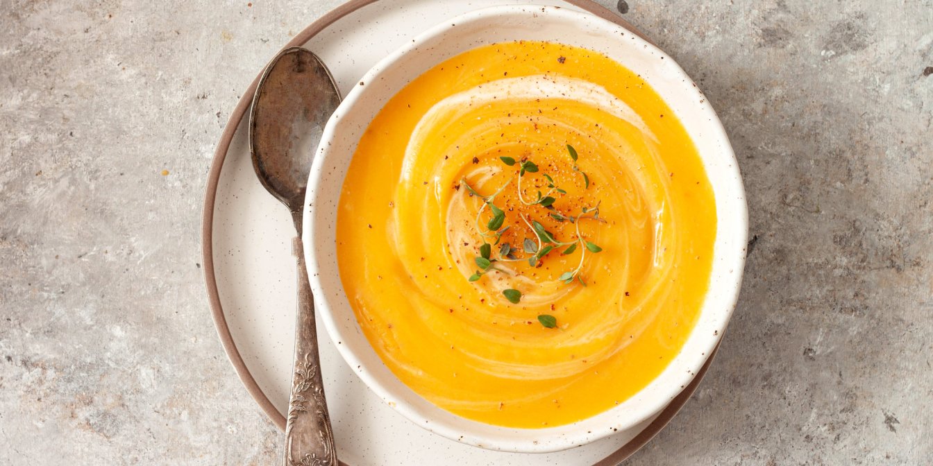 Для приготування цього супу вам знадобляться батат, селера, морква, чебрець, гарбузове насіння і трохи густих вершків. Цей поживний суп можна їсти на обід і вечерю, тим більше що його приготування займає всього 30 хвилин.