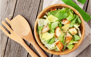 У нашій версії салату «Цезар» немає вустерського соусу та анчоусів, зате є курятина. Виходить ідеальна комбінація смаків!