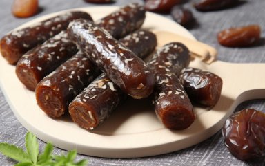 Таку фінікову ковбаску зручно брати з собою на перекус або можна подавати до гарячих напоїв. Радимо також приготувати шоколадну ковбаску з ромом.