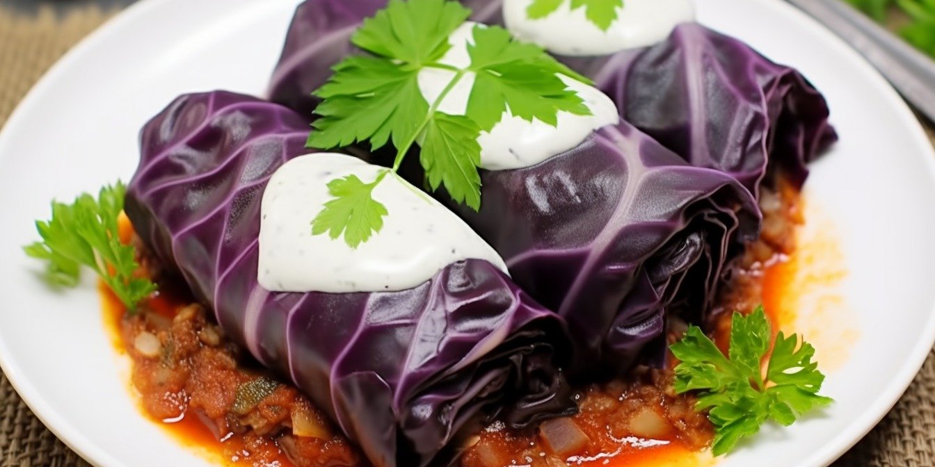 Фіолетові голубці із пшоном із червоноголової капусти — відеорецепт