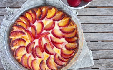 Корисна слива дає благородний багатий присмак солодкому вершковому чизкейку, який більше нагадує сирний пиріг.