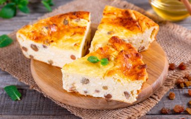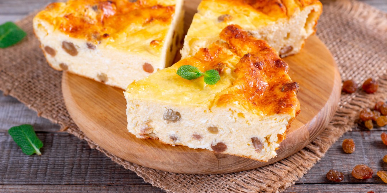 Запіканка із сиру, вермішелі і родзинок — ідеальний швидкий сніданок, що наповнить енергією аж до обіду.