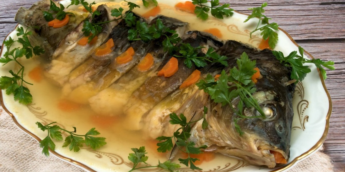 Пропонуємо вам одну з таких варіацій — спрощений рецепт ґефілте фіш. Від класичного він відрізняється тим, що вариться цільна риба, її лише потрібно нарізати порційними шматками.
