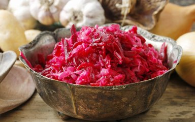 У цьому яскравому буряковому салаті є свіжі овочі й один варений, що створює цікаву смакову і текстурну комбінацію.