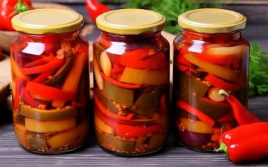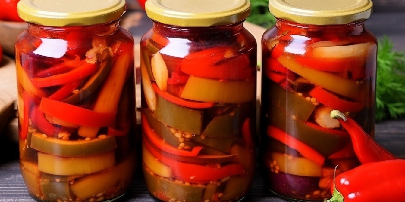 Баклажани з болгарським перцем на зиму — рецепт на 8 півлітрових банок (відео)