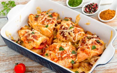 Приготуйте просту й неймовірно смачну страву — куряче філе під сирно-овочевою шубкою — і подайте з улюбленим гарніром.