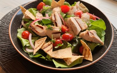 SHUBA пропонує повторити рецепт салату з куркою та лавашем від користувача TikTok з ніком vistovska_cooking. Салат «Шаурма» зі смаженою курочкою повторює смак улюбленого фастфуду, але вимагає менше часу на приготування.